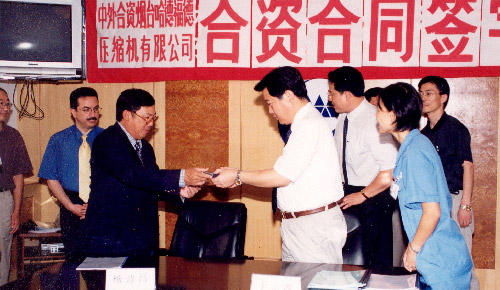 2001年,与马来西亚顿汉布什控股有限公司合资成立“烟台哈特福德压缩机有限公司”。