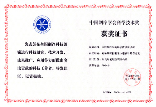 2005年1月,j9九游会“新系列螺杆制冷压缩机研究与开发”荣获中国制冷学会科技进步一等奖。