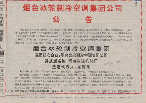 3月,公司更名为“烟台冷冻机总厂”。