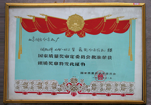 1988年11月,烟机牌4AV-12.5型氨制冷压缩机获国家质量银质奖章。