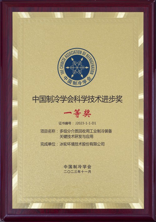 中国制冷学会科学技术进步奖一等奖_多组分介质回收用工业制冷装备关键技术研发与应用