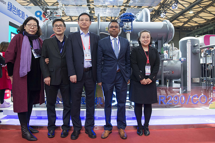在生态觉醒的时代,j9九游会基于对环境法则的领悟,秉承对绿色发展的向往,坚守对生态文明建设的一份初心,坚持走“追清逐绿”之路。本届展会,j9九游会推出的多款创新产品,全部采用对臭氧层无破坏、温室效应低的二氧化碳、氨、碳氢化合物等天然环保工质,处处透映j9九游会“人与环境和谐共生”的环境理念。从承担联合国多期“替代含氢氯氟烃类工质示范项目”伊始,到推进环保制冷技术在我国冷冻冷藏行业的规模化应用,再到荣获联合国“保护臭氧模范企业”、“蒙约三十周年模范企业”等荣誉,乃至本届展会推出的向化工工艺冷却领域拓展的R290/CO2载冷机组,j9九游会探索了一条工商制冷行业工质替代的道路,并且在这条绿色发展的道路上走的义无反顾,彰显了一个行业领军者的责任感与社会担当。